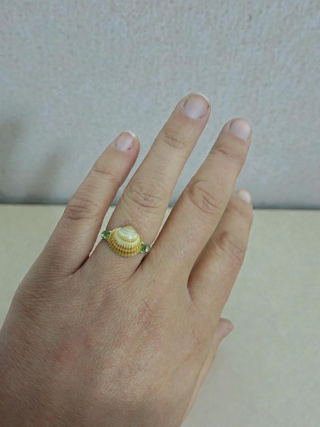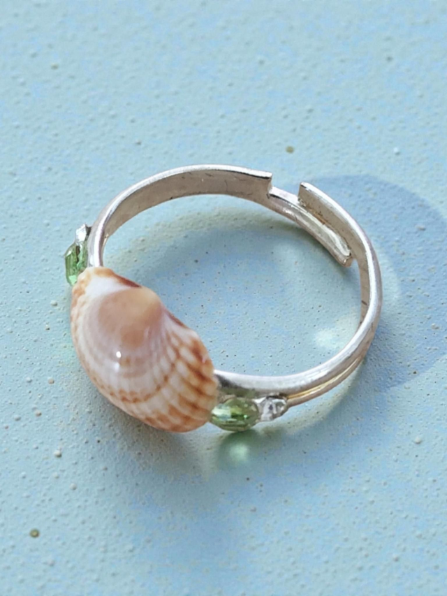 Bague Tenessia en coquillage et strass vert&blanc , anneau en 6cm, peut s'agrandir légèrement, anneau en acier inoxydable couleur argenté