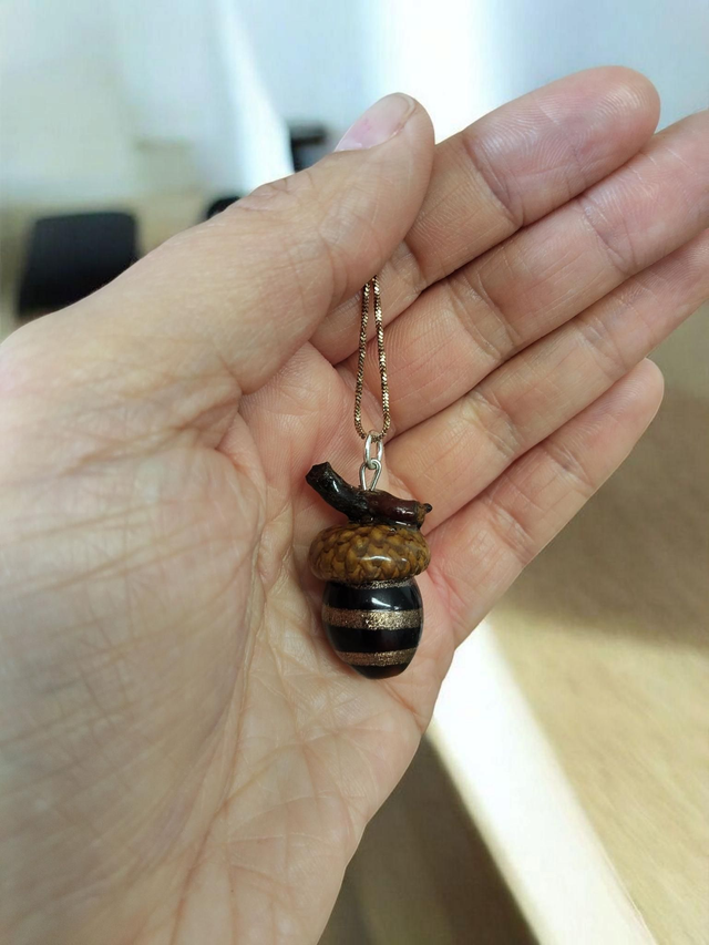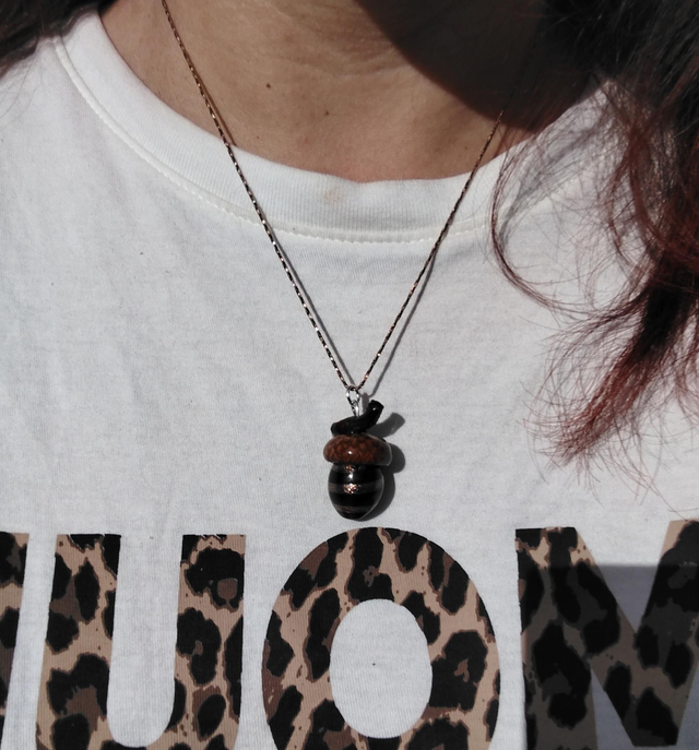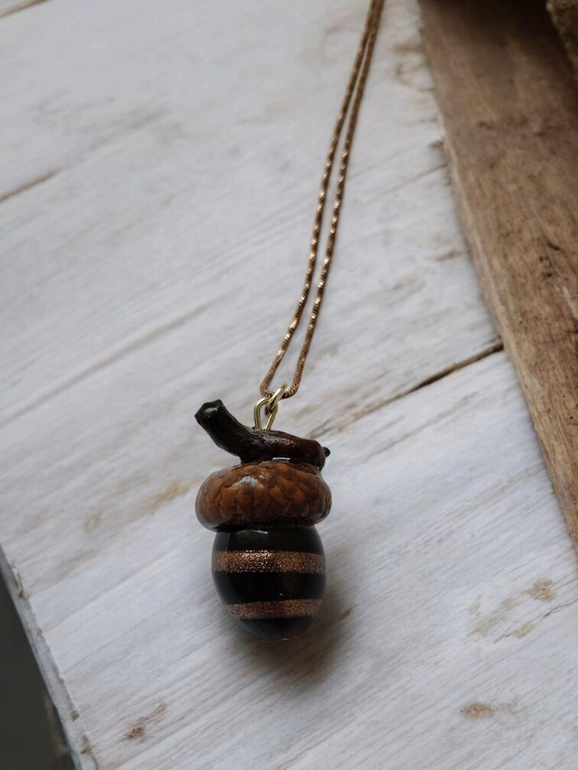 Collier artisanal réalisé avec une cupule de gland et une perle colorée, chaîne couleur cuivre en 50 cm acier inoxydable 🍂🍄🪵